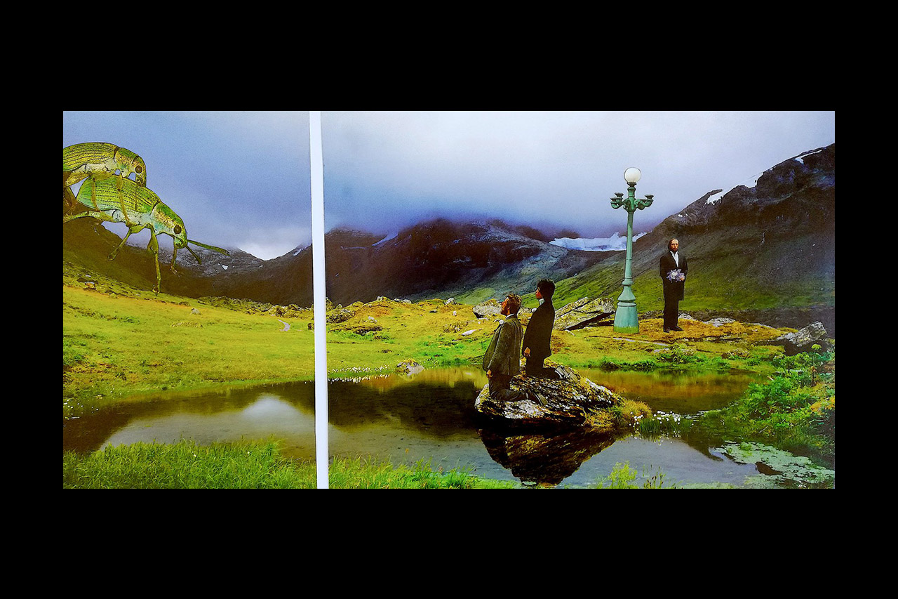 "Bröllop i det gröna." Konstverk av Hilda Hellwig i collageteknik.