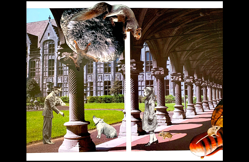 Collagen skapas utifrån stränga regler som jag ställer för mig själv. En sådan regel kan vara: ”använd högst tre bilder att skapa en helt ny bild som har en egen berättelse” eller ”den här bilden är ett porträtt av X.” En annan utmaning kan vara att bara tillåta en komplementfärg eller att placera några figurer eller något annat, som alltid måste vara med, i centrum av en serie av collage.