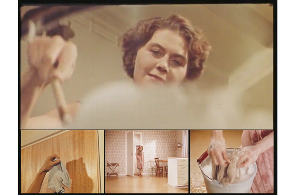 Det andra stora verket är Arbete i hemmet, ett videoverk bestående av 192 loopade filmsekvenser av hushållsarbeten från Husmors Filmer åren 1956–1961. Husmors Filmer AB (1951–1976) producerade ett slags infomercials baserade på information från fackkonsulenter och statliga institutioner som Hemmens forskningsinstitut och Statens institut för folkhälsan. Filmerna, som visades gratis på svenska biografer under eftermiddagen, blandade de senaste rönen från vetenskaplig och teknisk utveckling med produktplaceringar och reklam riktad till moderna husmödrar.