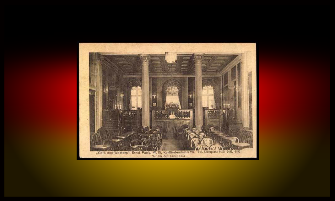 Café des Westens i Berlin var den sortens legendariska kafé med dålig vandel som jag och alla andra högspända gymnasister med litterära ambitioner romantiserade. Att sitta i ett moln av kaffe, absint, tobaksrök och tillgängliga kvinnor och så vips skulle bara romanen vara skriven av sig själv.