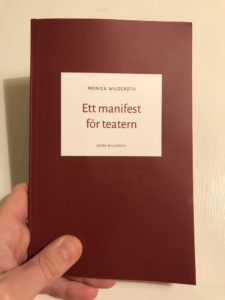 Men sedan dess har det återigen varit ganska tunnsått med manifest. Men nyligen, i slutet av 2017, efter en höst som präglats av #metoo-kampanjen, fick jag ett helt nyskrivet manifest i mina händer. Det rörde sig om Ett manifest för teatern (utgivet av förlaget Björk Wilderoth) författat av Monica Wilderoth, som är skådespelare, regissör och dramatiker.