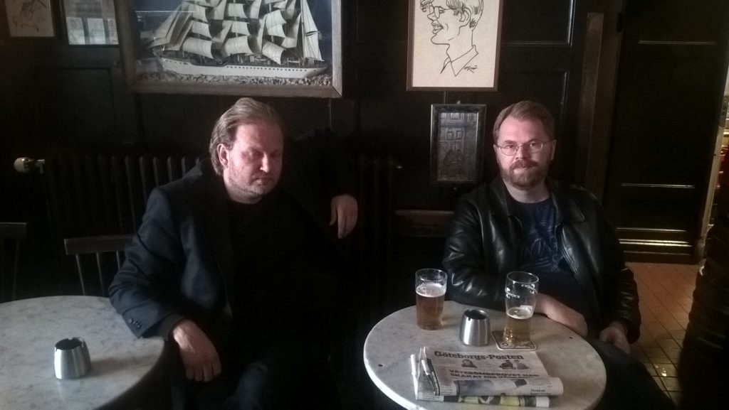 På väggen på den drygt hundra år gamla krogen hänger en stor tavla som föreställer det gamla Göteborg. Under den står rader med ölflaskor på den mörka trähyllan och lite längre bort en båtmodell. David Brolin berättar att hans första text i Häften för kritiska studier handlade om Arnold Ljungdal.