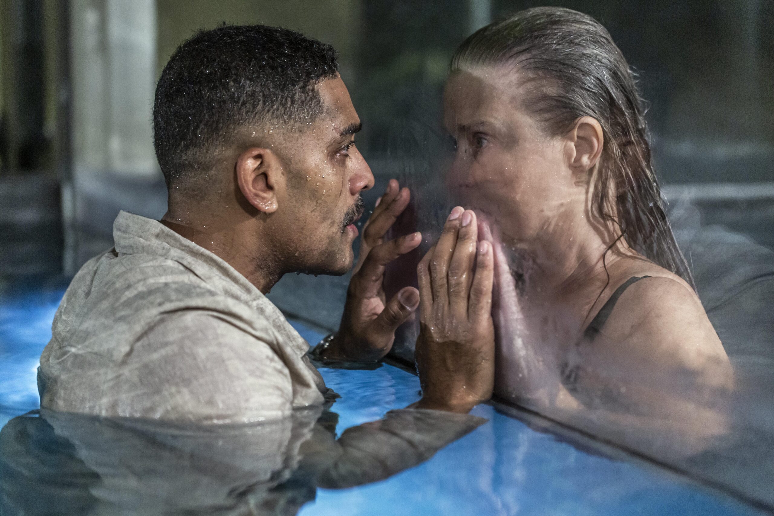 PANDEMIFILM. Lena Endre och Alexander Karim kämpar med den sociala distansen i årets knasigaste lyxhotelldystopi med manus av Camilla Läckberg. Och det är ganska fint. ”Tänk på att tvätta händerna efter att du har onanerat”, mässar en artig kvinnoröst på ett hotell i centrala Stockholm. En superpandemi har utrotat halva mänskligheten och här har några privilegierade personer checkat in för